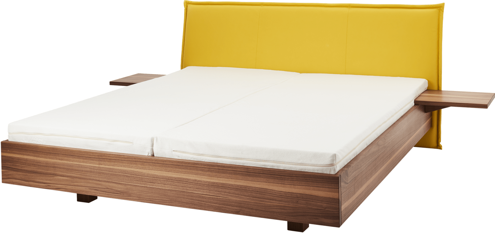 Der ausgeprägt dunkle Anblick des amerikanischen Nussbaums verleiht Bettgestellen Individualität und eine hohe Wertigkeit. Das Holz strahlt viel Wärme aus.